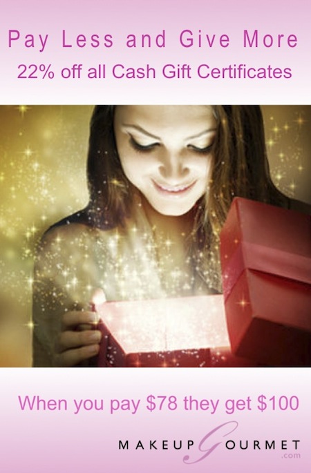 • 15% discount on products when Gift Certificate is used in conjunction with full-price Makeup Gourmet service.