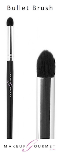 This brush shape resembles the upper tip of a bullet, thus the name. Ideal for placing and blending eyeshadow in small areas with clean precision. Used for my Modern Contour look.